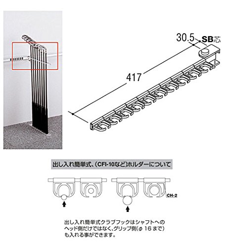 シャフトホールド部、ゴルフクラブ出し入れ簡単式(16φグリップまで出し入れ可能、CH-2付)