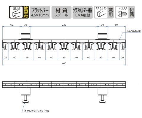 Sバー装着式フェイスパーツの中の、パター横並べ陳列専用10連フック