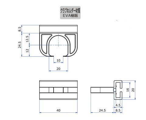 クラブベースフック(CBF)のフラットバー部の任意位置に、任意数量を取り付けて、オリジナルのゴルフクラブ陳列用フックを製作していただく事ができるホルダーパーツ