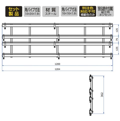材質:スチール(横パイプ規格14×24×1.6t・縦パイプ規格16×16×1.6t)