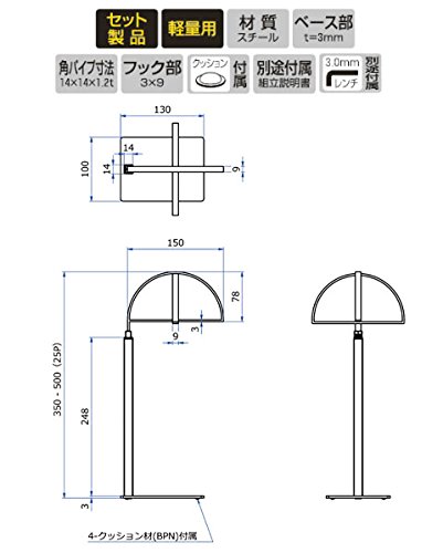 材質:スチール(ベース100×130×3.0t クッション付、パイプ規格14×14×1.2t、首部3×9フラットバー)