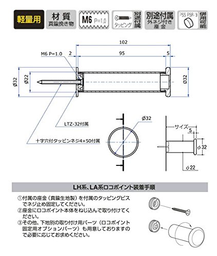 サイズ80mm以上にはロコポイント補強用座金(LTZ呼び名32)標準装備
