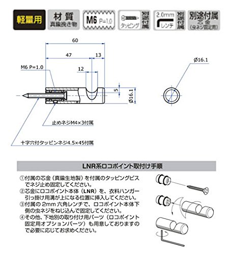 木下地直付け用、ハンガー1点正面陳列用金具(芯金先固定式ロコポイント系製品)