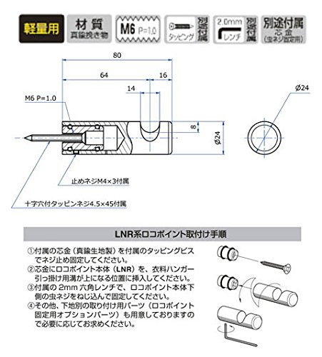 木下地直付け用、ハンガー1点正面陳列用金具(芯金先固定式ロコポイント系製品)