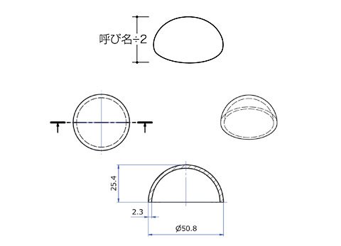 スリットパイプ天面、溶接用半円フタ