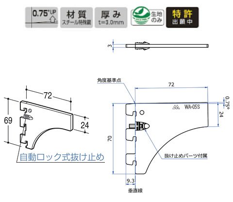 のみ寸0~4対応自動ロック式抜け止め標準装備
