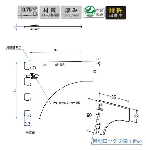 のみ寸0~4対応自動ロック式抜け止め標準装備