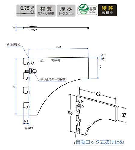 のみ寸0~4対応自動ロック式抜け止め標準装備