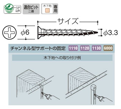 チャンネル型支柱を木下地に固定するための特殊タッピングビス