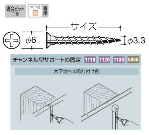 チャンネル型支柱を木下地に固定するための特殊タッピングビス