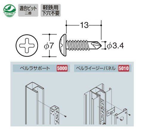 ベルラサポート、およびベルライージーパネル等を弊社製厚肉スタッドに固定するための先端ドリル付き一般規格タッピングビス