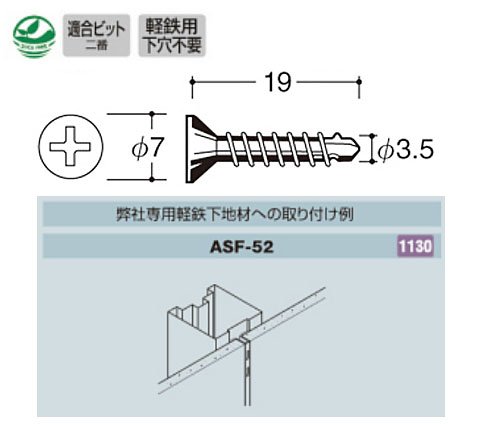 ASF-52(チャンネルサポート)を弊社製厚肉スタッド、PST-5に固定するための先端ドリル付き一般規格タッピングビス