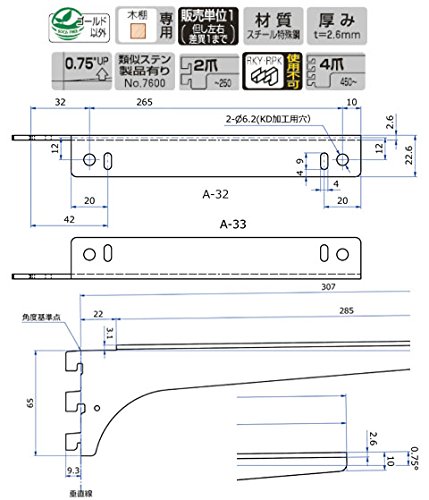 スリット穴掛け式棚等設置システムの、木棚専用腕金具