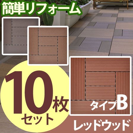 ワイエムワールド ウッドタイル 10枚 タイプB・レッドウッド 腐らない人工木 ジョイントタイル