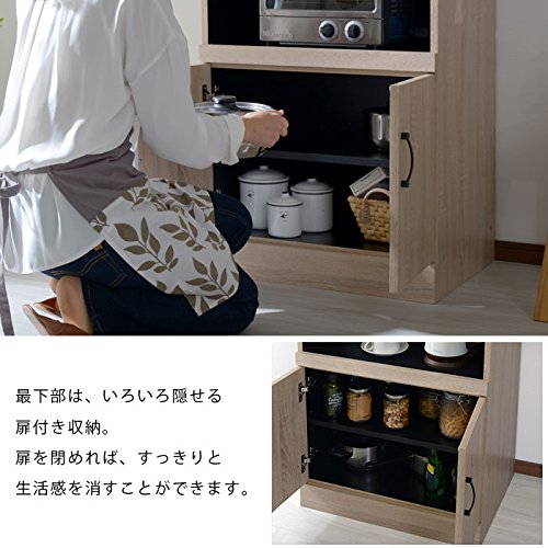 ワイエムワールド ハイタイプ 食器棚 レンジ台 幅60cm 【色: ウォールナット 】 ダイニングボード 家電収納