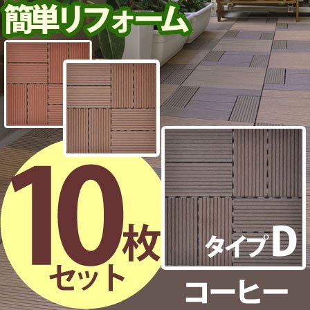 ワイエムワールド ウッドタイル 10枚セット タイプD・コーヒー 腐らない 人工木 ジョイントタイル ウッドデッキ 庭