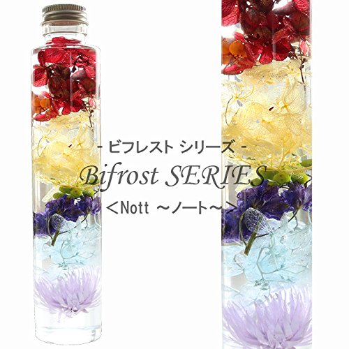 ~ Bifrost SERIES ~ < ビフレスト Nott >///// ハーバリウムとは植物学においての植物標本です。 自然から採取される植物をミネラルオイルに保存しております。 あまりの美しさに近年インテリアとして使用されるようになりました。 ヴァルハラがお届けしたいのは、 「何気ない毎日に豊かさを。日常に「そっ」と寄り添うインテリア」です。///// ヴァルハラのハーバリウムはシンプルなデザインから 豪華なデザインまで取り揃えております。 本商品は「Bifrost SERIES」となっております。 Bifrost(ビフレスト)とは虹を意味する北欧の言葉です。 虹の七色をイメージしグラデーションで制作しました。 またDagrとは「昼」を意味します。 お昼間のような明るいハーバリウムです。素敵な毎日のお手伝いになれば幸いです。 ///// ご自宅用はもちろん、プレゼントにも人気があります。 新築祝い、引越し祝い、開業祝い、結婚祝い、内祝いや ブライダル、転職、退職などのギフトにもご利用頂けます。 ギフトやプチギフトにピッタリなハーバリウムです。 お渡しになる方のセンスが光る一品です。///// ヴァルハラが保存液に使用しているのはベビーオイルなどにも 使われるミネラルオイルです。エステなどにも使用されており 万が一、保存液に触れてもご安心頂けます。 現在、使用しているオイルの販売も検討しております。 少しでも多くの方に素敵な毎日を過ごされるお手伝いになれば幸いです。