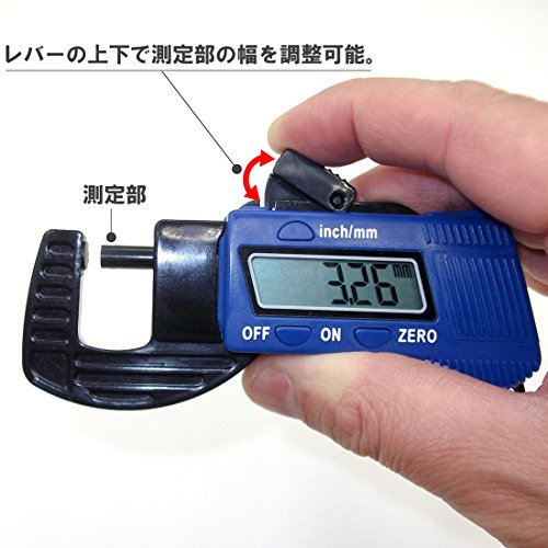 - 最小読取0mm~最大読取12.7mmまで測定可能です。一目でわかるデジタル表示で数字が見やすく目盛りの読み違いが防げます。