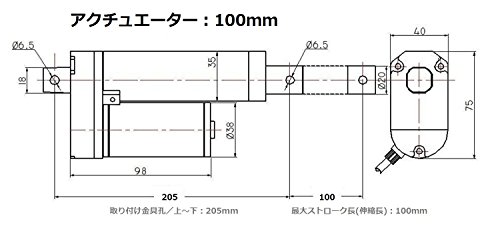 - ●入力電圧:DC12V ●最大ストローク長:約50mm/80mm/100mm/150mm/200mmからお選びください。