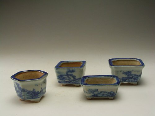お買い得 中国ミニ山水画盆栽鉢 4点セット(A)