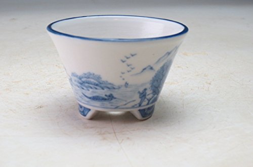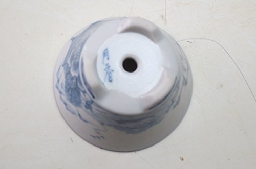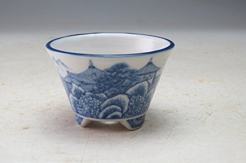 伊藤月香 青絵山水画丸ミニ盆栽鉢