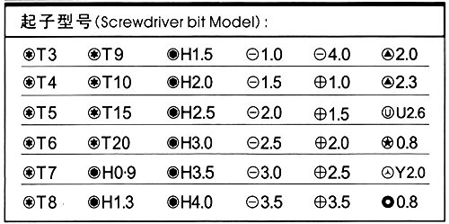 - 【ビットの種類】:【トルクス】T3/T4/T5/T6/T7/T8(穴あき)/T9/T10(穴あき)/T15/T20(穴あき)/【六角/ヘクスローブ】H1.5/H2.0/H2.5/H3.0/H3.5/H4.0/H4.5【ソケット】M3.0/M4.0/M5.0/【三角/トライアングル】▲2.0/▲2.3/【Y型】Y2.0/【星型】★0.8/★1.2/【U型】U2.6/【ポジドライブ型】PZ1.5/【スクエア型】SQ1.0/【マイナス】-1.5/-2.5/-3.5/【プラス】+1.0/+2.0/+3.0