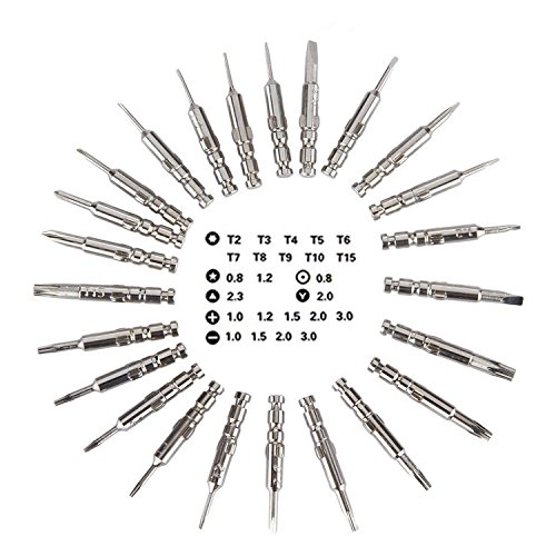 - キーケース程度のサイズの精密特ドライバーセットです。 24種類のビットがついてます。 詳しくは写真を参考にしてください。 硬度 HRC52-60 星型ドライバー : 0.8 1.2 トルクスドライバ : T2 T3 T4 T5 T6 T7 T8 T9 T10 T15 Yスクリュードライバー : 2.0 +ドライバー : 1.0 1.2 2.0 3.0 マイナスドライバ : 1.0 1.5 2.0 3.0 ポイントドライバー : 0.8 サイズ105x35x15mm 重さ116g 説明には万全を期してますが、万一商品と相違があるときは、商品を優先とさせて頂きます。