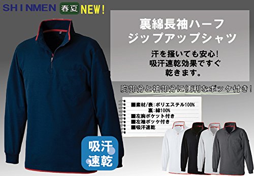 SM:34025 裏綿長袖ハーフジップアップシャツ(LL 05: ネイビー)