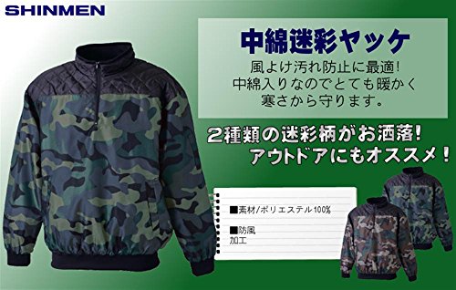 風よけにオススメ!中綿入りで暖かい作業服 お洒落な迷彩ヤッケ登場! 仕事着だけでなく、アウトドアやレジャーシーンにもオススメです! ■素材/ポリエステル100% ■防風
