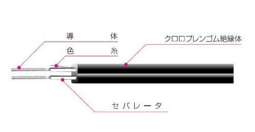 - 被覆材クロロプレンゴムを使用した耐熱性に優れたゴムコードで、主に300V以下の小型電気機器に使用されます。