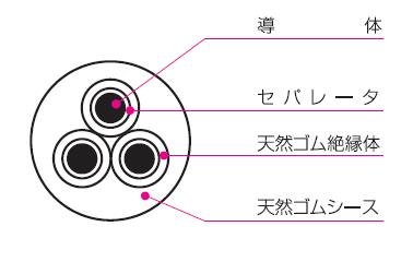 - 弾力性のある強靭な天然ゴムを使用しているため、衝撃、磨耗、可とう性等に充分に強味を発揮し、絶縁抵抗、耐電圧等電気的特性に優れています。