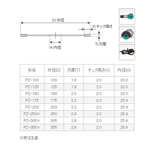 サイズ(外径×刃厚×チップ高さ×内径):355×2.8×2.0×25.4mm