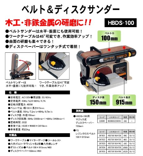 H&H ベルト&ディスクサンダー HBDS-100 卓上ベルトサンダー