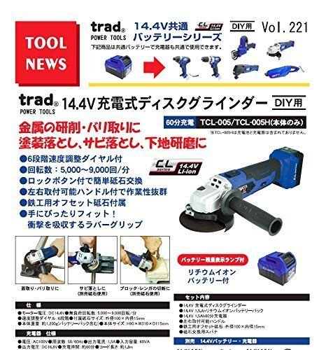 TRAD 14.4V 充電式ディスクグラインダー TCL-005 【リチウムイオンバッテリー1個付き】