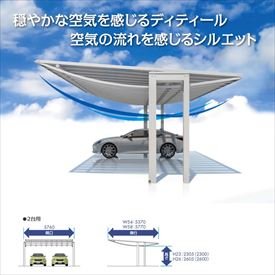 ●空を思わせる優雅な曲線が印象的なカーポートです。独創的なフォルムだけでなく、中間に柱がなく駐車しやすいといった使い易さもポイントです。はっきり言って通常のカーポートと比べても、決して安いものではありません。普通のカーポートでは物足りないというあなたにだけ、おすすめ致します。
