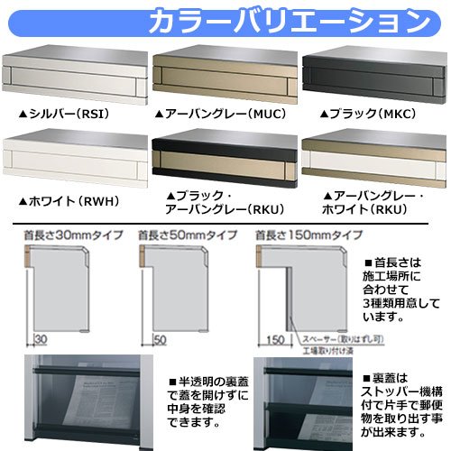 郵便ポスト 埋め込み式ポスト SOV2型-F50W-MKC ブラッグ 2ブロックタイプ 首長さ50mmタイプスタンダードでリーズナブルな埋込みタイプのポスト!送料 無料※北海道、沖縄、離島は別途料金が必要となります。サイズ 本体:W391×D310×H390mm 首長さ50mmカラー ・シルバー(RSI) ・アーバングレー(MUC) ・ブラック(MKC) ・ホワイト(RWH)仕様 埋め込み式ポスト(前入れ後取出し)/南京錠取付可能※南京錠は別途ご用意ください。材質 本体:ガルバリウム鋼板+塗装 口金部:アルミ鋳物 裏蓋:ポリカーボネートセット内容 ■SOV-F50W型MKC ブラッグ 2ブロックタイプ 首長さ50mmタイプ備考・注意 ※配送には実働約3日~5日程度お時間がかかる場合があります。※口金下部にモルタル化粧仕上げが必要です。※イメージ画像はイメージサンプルとして販売内容以外の商品があります。必ず内容を確認ください。※イメージ画像は使用するモニターやブラウザにより色が違って見える場合があります。