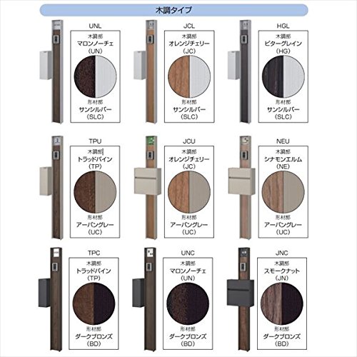 『機能門柱 機能ポール』三協アルミ ファノーバ 組合せ例 2017-E 木調タイプ 表札はネームシールです アーバングレー+オレンジチェリー