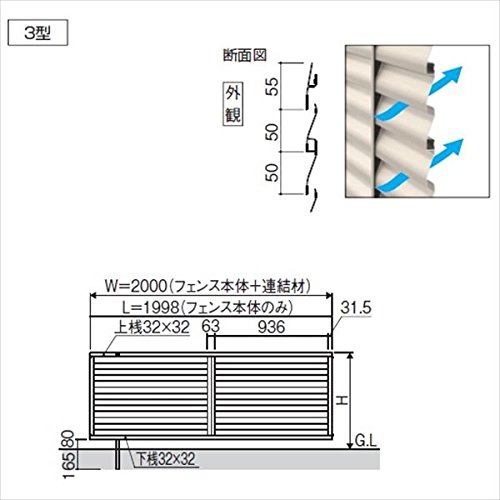 三協アルミ 形材フェンス シャトレナ3型 2006 本体 『目隠しルーバー アルミフェンス 柵』 ダークブロンズ