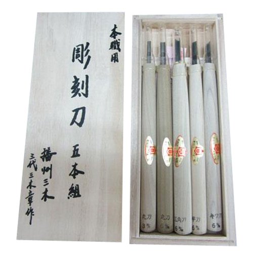 三木章刃物 彫刻刀 桐箱入 5本組 140036
