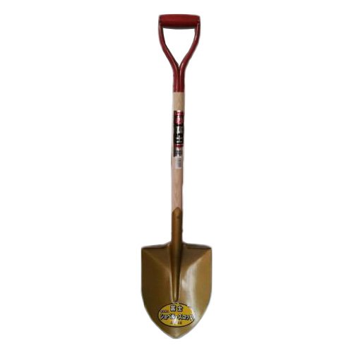 富士の先端がとがった、剣スコップです。 上等品です。 全長:970mm 重さ:約1.5kg 頭部幅:232mm 柄:木製 頭部:鉄製
