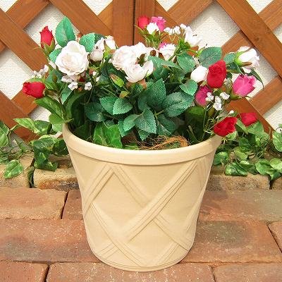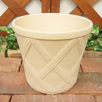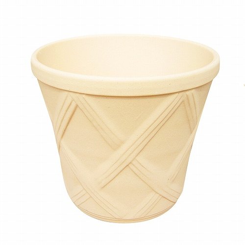 8号 ハーブのかおり クロス柄 深型 ホワイティクリームイエロー 植木鉢 おしゃれ 陶器 穴あり 三河焼
