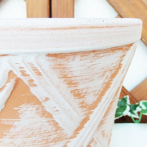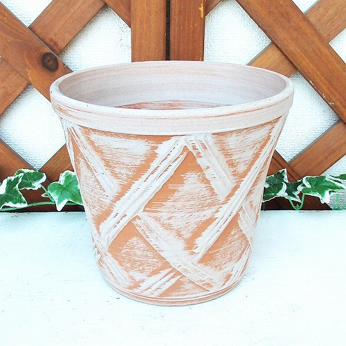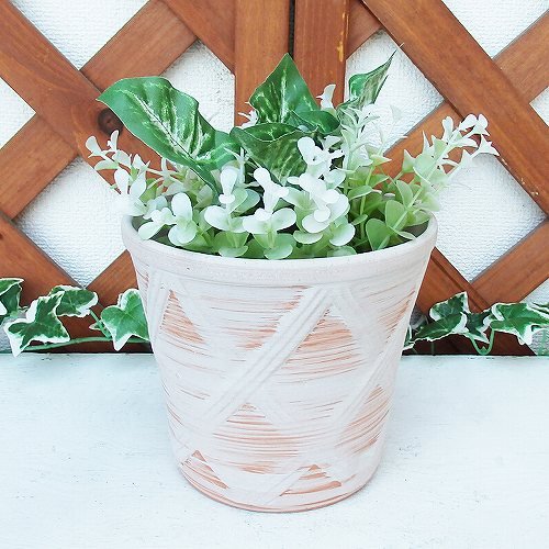 6号 ハーブのかおり クロス柄 深型 ホワイトビスク 植木鉢 おしゃれ 陶器 穴あり 三河焼 WB6