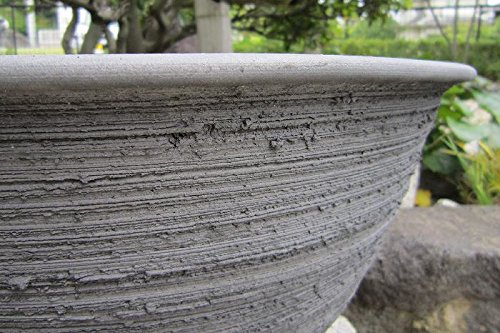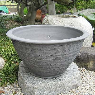 13号 大型 大きな睡蓮鉢 手造り丸ワン型削り イブシ銀 水鉢 陶器 おしゃれ 和風 国産 三河焼き 1002-13