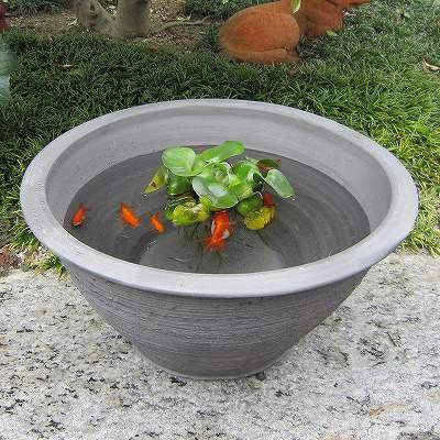 - 特 性:睡蓮鉢は、屋外用です。この睡蓮鉢は手造りの為、形状、サイズ、お色目に個体差があります。手造りの為、少々のいがみはご容赦ください。特にお色目に付きましてはいぶし焼きのため焼きムラがある場合がありますのでご了承の上お買い求めくださいませ。内側側面、底に凸凹がある場合があります。