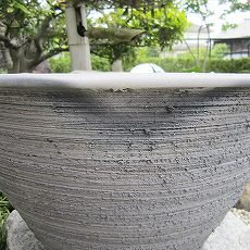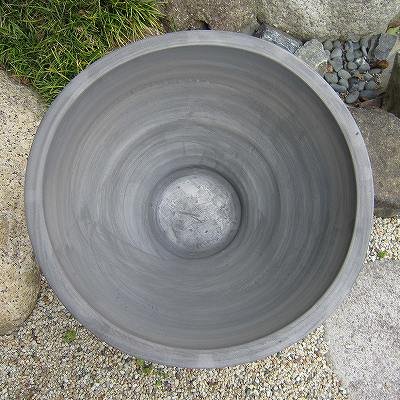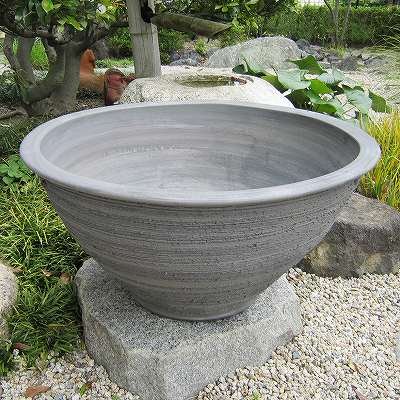 16号 大型 大きな睡蓮鉢 手造り丸ワン型削り イブシ銀 水鉢 陶器 おしゃれ 和風 国産 三河焼き 1002-17