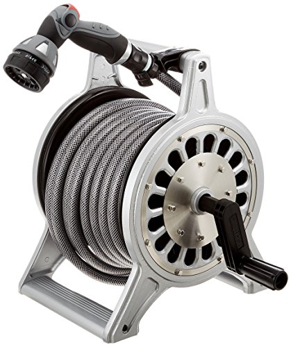 シンプルモダンな住宅スタイルや、おしゃれなエントランスイメージ、ガレージやカーポートにもマッチして存在感をアピールします。ブロンズで実績のあるアルミニウム合金フレームに、印象的なステンレス製ディスクプレートを施したシンプルでカラフルな立水栓やモダンな水栓柱に似合うカラーをそろえました。フレームとともに頑丈な金属製の多機能ノズルを装備し、散水・洗車・清掃・水やりなどの目的に合わせた水形が簡単に選択できます。【仕様】●サイズ:幅245×奥行410×高さ410mm●カラー:シルバー●材質:アルミニウム合金、ステンレス、ABS、PP、POM、PVC●ホース径長さ:内径12mm×20m●給水ホース径長さ:内径12mm×2m●付属品:散水ノズル、ノズルフック、蛇口接続具、ネジ式プラグ