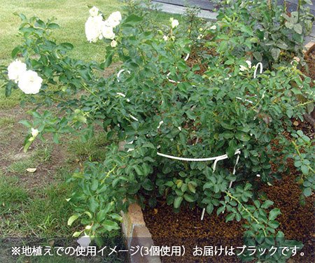 サークルガードは、土に差してバラや草花、花木などを包むように支えるお役立ちグッズ。サークル状のシンプルな作りですので、お庭のイメージも崩しません。また、3個組み合わせると丁度「円」の状態になり、更にサークルガードの端と端の部分がハートのように見えます。鉢でも地面でもどちらでもご使用できますよ!バラやクレマチスの愛好家に特に人気のあるベルツモアのアイアン製品です。日本製で丈夫なつくりが多くの人から信頼を得ています。アーチ、フェンス、オベリスク、支柱などいろいろなバリエーションからお選びください。サイズ(約):幅41cm、奥行き10.5cm、高さ69.5cm(支柱の幅10cm、高さ50cm)材質:鉄(中に空洞のない無垢材)塗装:粉体塗装色:ブラック生産国:日本組立なし(一体型)(Amazonでは''へのリンクは掲載されません)