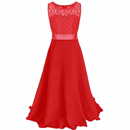 三番目の店 子供のプリンセスの王女のレースのロングドレス ワンピース (150, 赤)