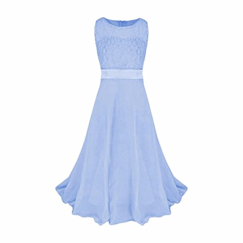 三番目の店 子供のプリンセスの王女のレースのロングドレス ワンピース (130, スカイブルー)