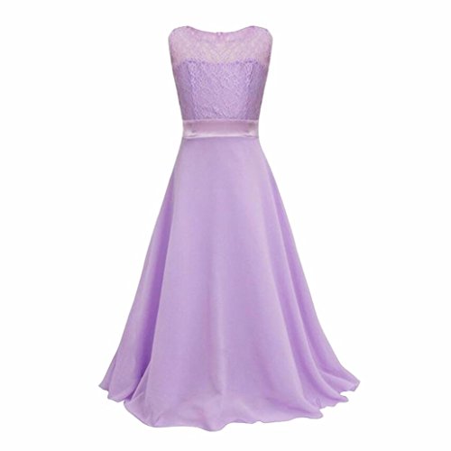 三番目の店 子供のプリンセスの王女のレースのロングドレス ワンピース (170, 紫)